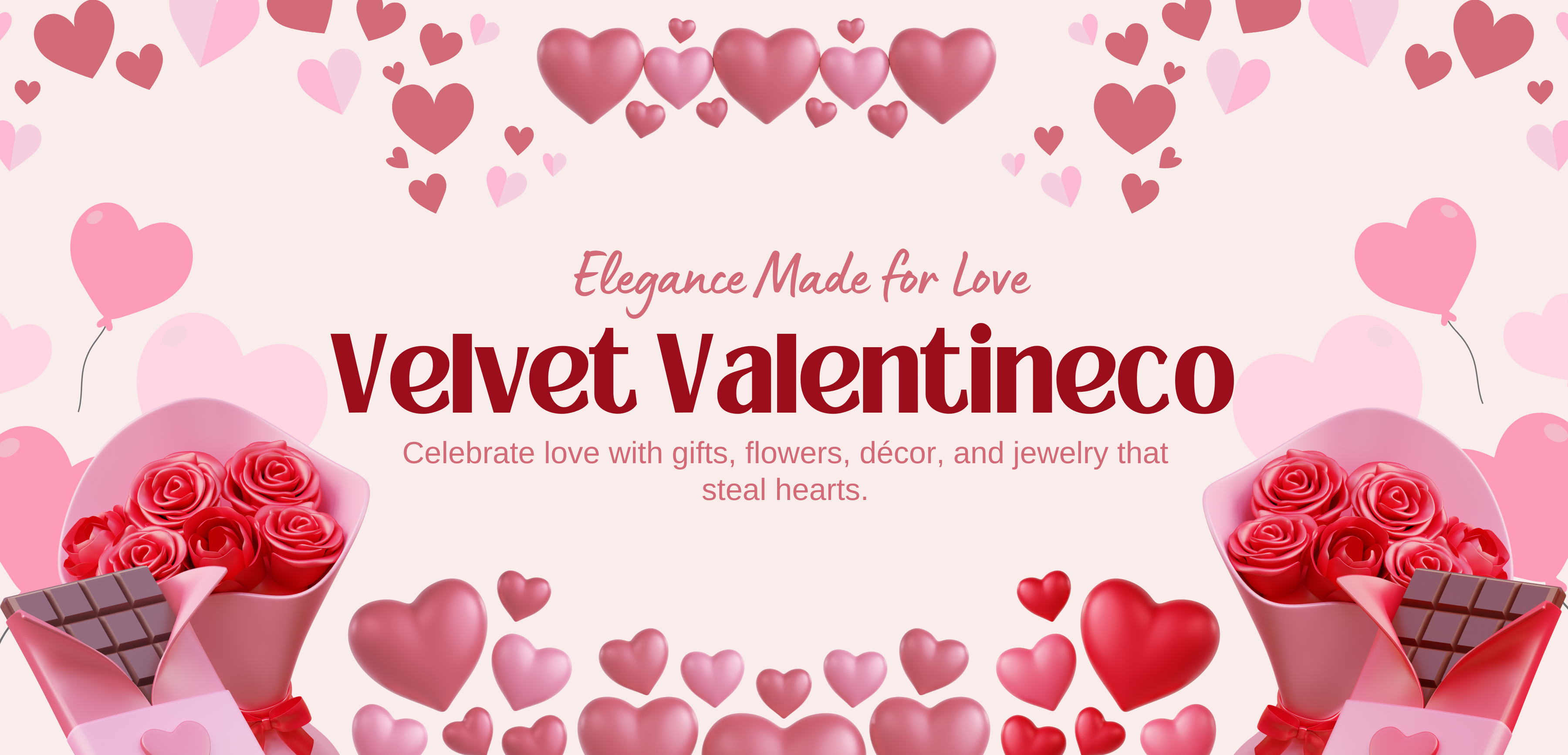 At Velvet Valentineco, we believe love should be celebrated every day with elegance, thoughtfulness, and charm. From enchanting Valentine décor and exquisite gifts to beautiful flowers and heartfelt jewelry, our carefully curated collection brings romance and joy to every moment. We aim to create experiences that make expressing love effortless, meaningful, and unforgettable.